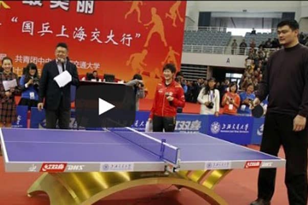 Lors d’un gala en chine, le sélectionneur national chinois Liu Guoliang a affronté une autre légende locale en la personne du basketteur Yao Ming qui mesure tout de même 2,29 mètres !